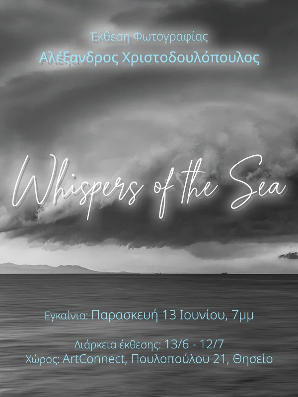 Έκθεση Καλλιτεχνικής Φωτογραφίας του Αλέξανδρου Χριστοδουλόπουλου, στον χώρο του ArtConnect. Εγκαίνια Παρασκευή 13 Ιουνίου, 7μμ. Διάρκεια έως Παρασκευή 11 Ιουλίου.