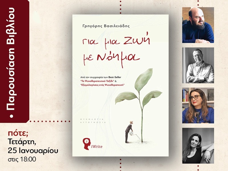 Ομιλία της Σοφίας Χατζηδημητρίου για το βιβλίο του Γρηγόρη Βασιλειάδη με τίτλο «Για μια ζωή με νόημα».